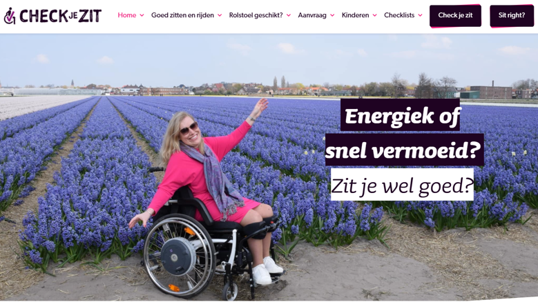 CheckJeZit helpt rolstoelgebruikers inzicht te krijgen in hun rolstoel en mogelijke zit- en rijproblemen. Op de website www.checkjezit.nl kunnen zij uitgebreide informatie vinden over zitten, rijden, veiligheid en onderhoud van een rolstoel. Daarnaast kunnen gebruikers de CheckJeZit vragenlijst invullen over de geschiktheid van hun rolstoel. Uit de vragenlijst rolt een samenvatting met belangrijke gegevens, mogelijke problemen en advies.